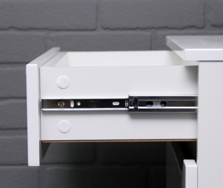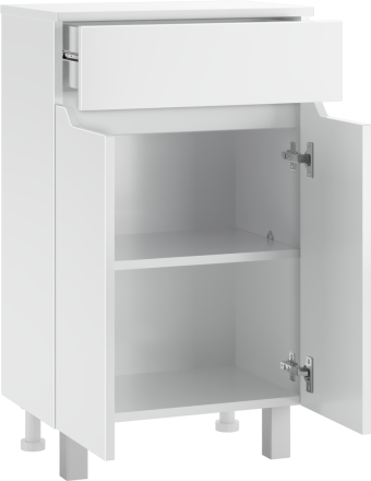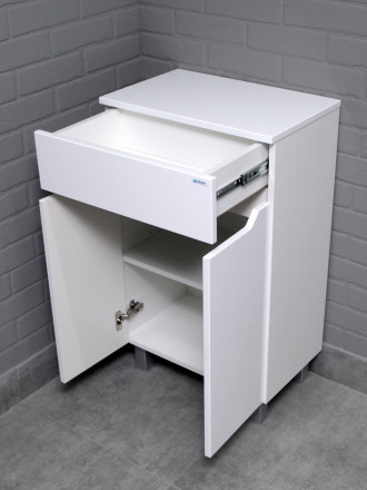 Продуманная конструкция и удобство использования. Комод оснащен одним ящиком с шариковыми направляющими, обеспечивающими плавное и бесшумное открывание и закрывание. Высота ножек составляет 10 см, что позволяет легко поддерживать чистоту и порядок в помещении.