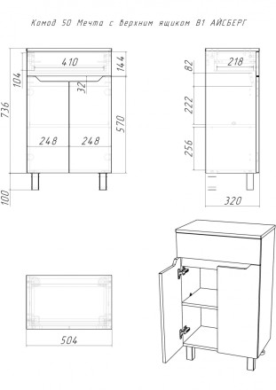Комод 50 Мечта с верхним ящиком В1 от Айсберг - стильное и функциональное решение для вашей ванной комнаты.